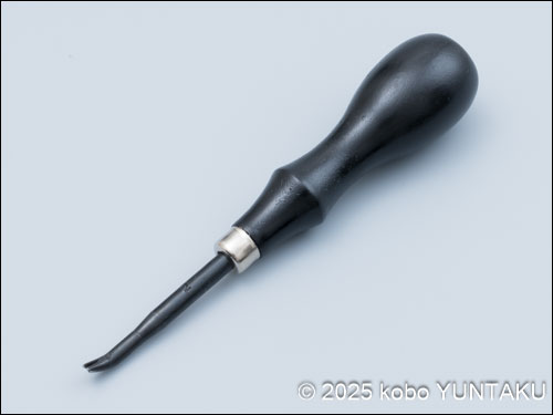 2枚の革を貼り合わせ、アクリル絵の具で最後の色づけをしてから、「へりおとし」という道具で面取りします。